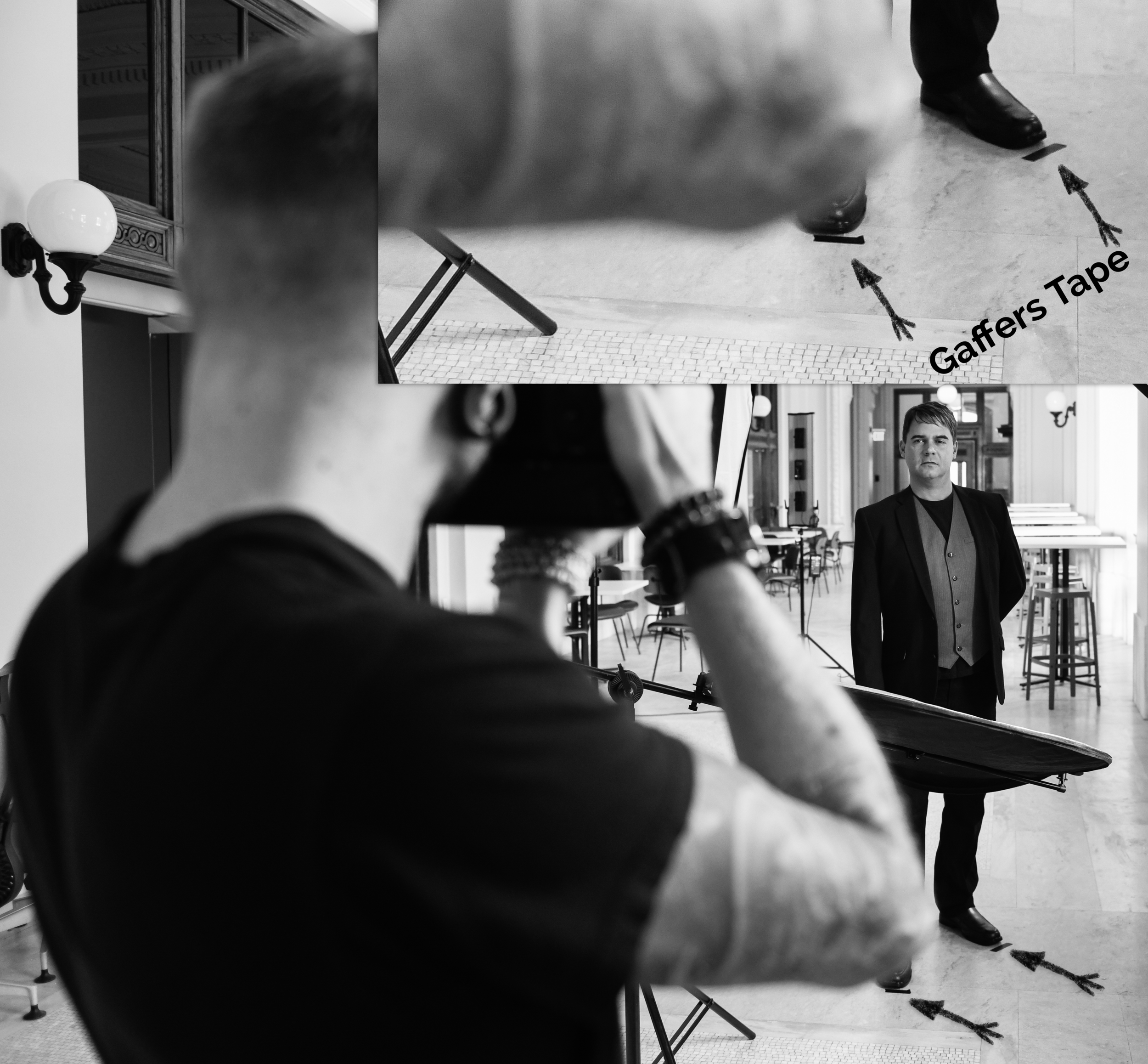 The second thing that I observed was such a simple yet profound trick. Gaffer tape on the floor. If you don’t know about the inverse square law of light then you should check out a couple of tutorials online. The idea is that light and the intensity of light changes and depending on how close the light source is to the subject, inches matter. Having a couple pieces of tape on the floor for your subject to stand on is a perfect way of making sure all the setting on your light configuration is consistent.